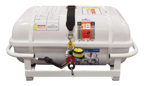 Revere USCG IBAs are recognized for their rugged construction and reliability during the toughest survival situations. The 4,6,8, and 10 person Low Profile Container models are the perfect choice for commercial fishing or passenger vessels with room to mount a hard container on a hardtop or deck.