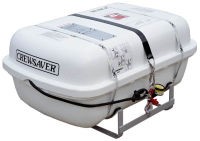 Features include a fully enclosed, double-skinned, high visibility canopy complete with SOLAS-grade reflective tape, non-inflatable easy access boarding ramp, high volume water pockets to ensure maximum stability when inflated, canopy fitted with LED light ensuring maximum visibility, and a fully insulated floor to ensure maximum thermal protection. Liferafts are stowed in round cylindrical GRP containers designed to suit most deck spaces and providing quick access to the lifting bridle. The equipment pack is sealed in a strong water-resistant bag and secured to the internal safety line of the liferaft.