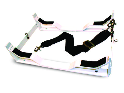 Powder coated aluminum cradle assembly includes strapping and hydrostatic release unit. Does not include mounting hardware. Works with 4-8 person Coastal Elite rafts and 4 person Offshore Elite.