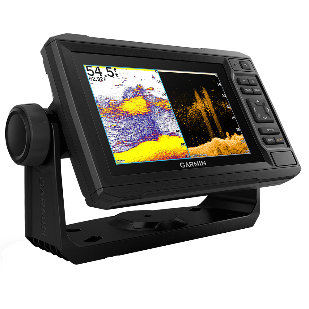 The sunlight-readable 6” touchscreen chartplotter features a quick-release bail mount, and the transducer bundle adds Ultra High-Definition scanning sonar and CHIRP traditional sonar.