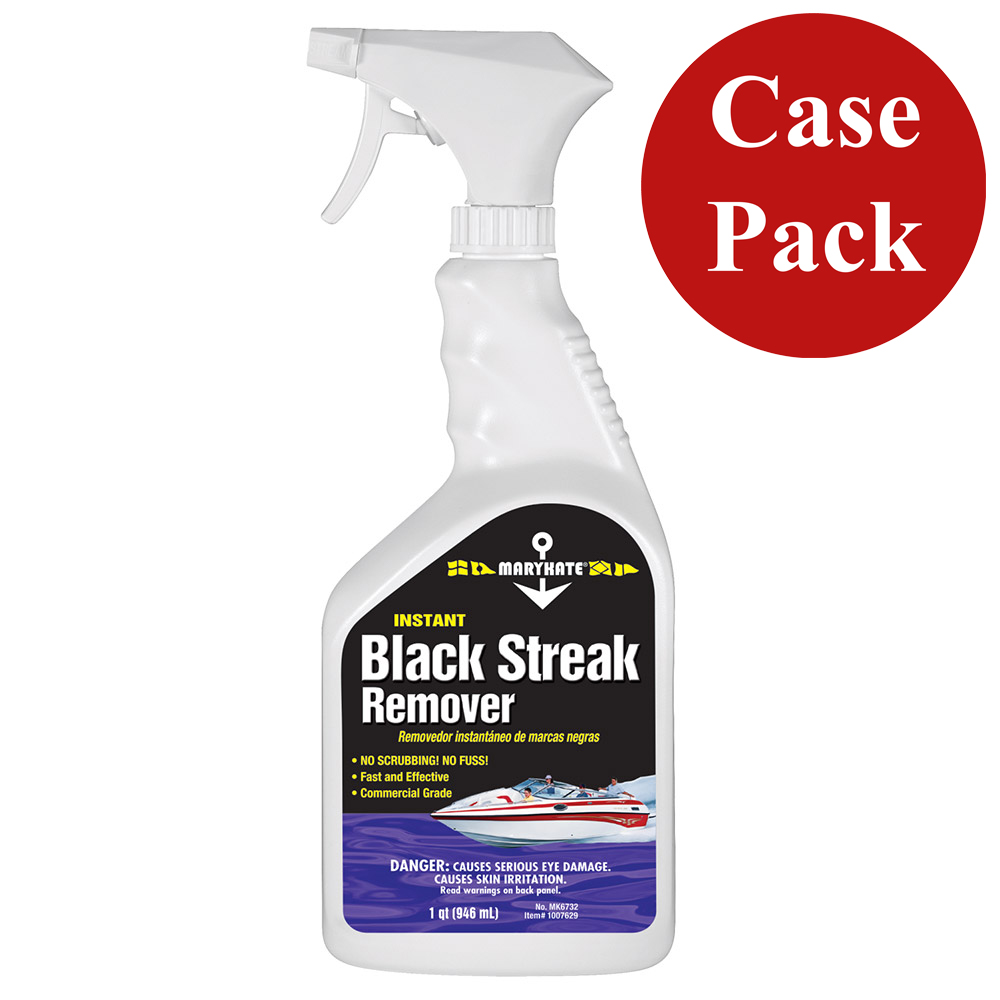Quick, easy & effective. Instantly removes black streaks caused by water run off on fiberglass, & metal. No scrubbing necessary. Spray on/wipe off. Commercial grade. Test on painted surfaces.