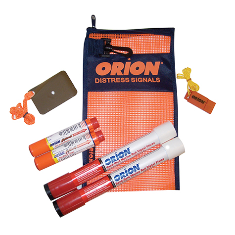 Designed for recreational boaters who sometimes travel out of sight of land. Contains USCG approved Alert and Locate Day/Night signals. Packed with an international orange zippered mesh storage bag with clip and space for additional signals and accessories.
